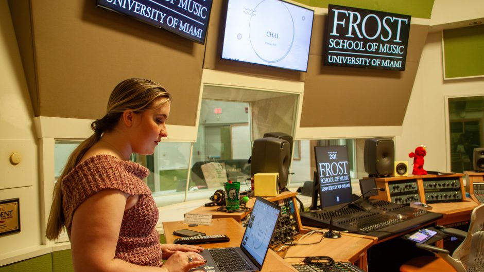Frost School professor and CHAI co-leader Raina Murnak, front, with other members of CHAI at Weeks Recording Studio. Photo by Frost School student and CHAI member Amari Stewart.