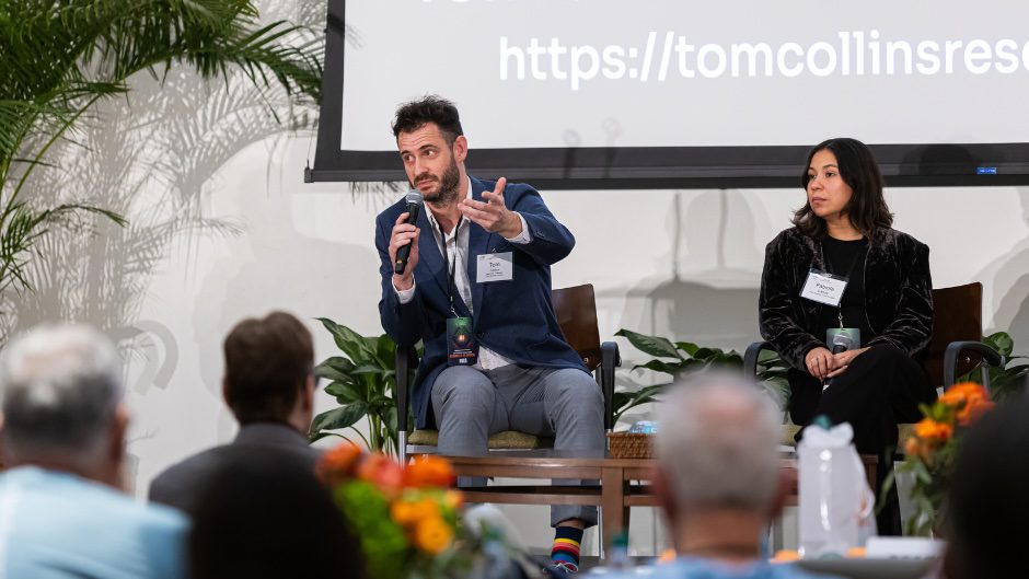 Frost School professor and CHAI co-leader Tom Collins co-hosting a panel on art and AI at the University of Miami College of Engineering’s Rothberg Catalyzer AI Summit of the Americas. Photo: Jenny Abreu Photography.