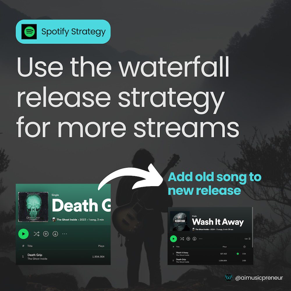 This creates a “waterfall” effect. Listeners will stream your first single and then listen to the second one.