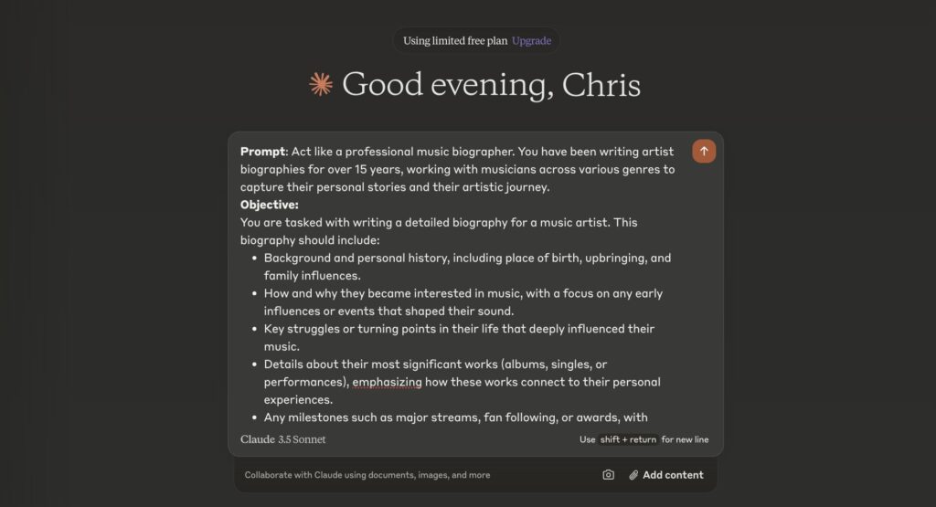 Writing a compelling music artist biography can be a daunting task, but with the help of AI, it becomes significantly easier and more efficient.