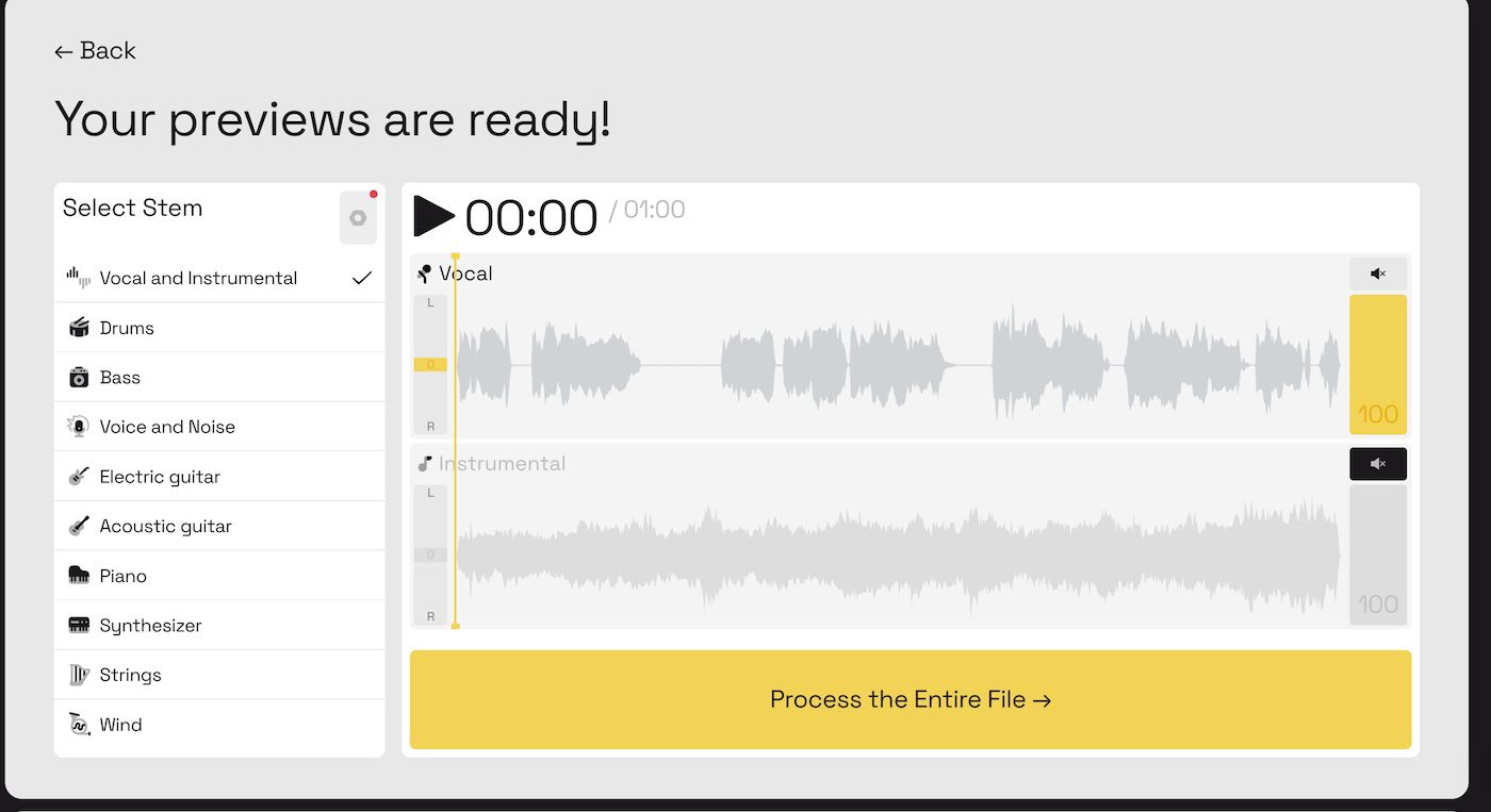 - Choose which stems you want to extract