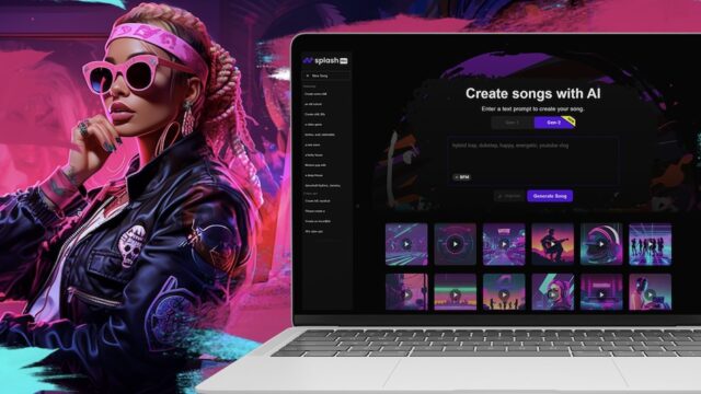 Splash Pro is a unique AI tool that lets anyone generate fully produced original songs instantly by writing a short text description of the desired style or mood, no musical skills required.