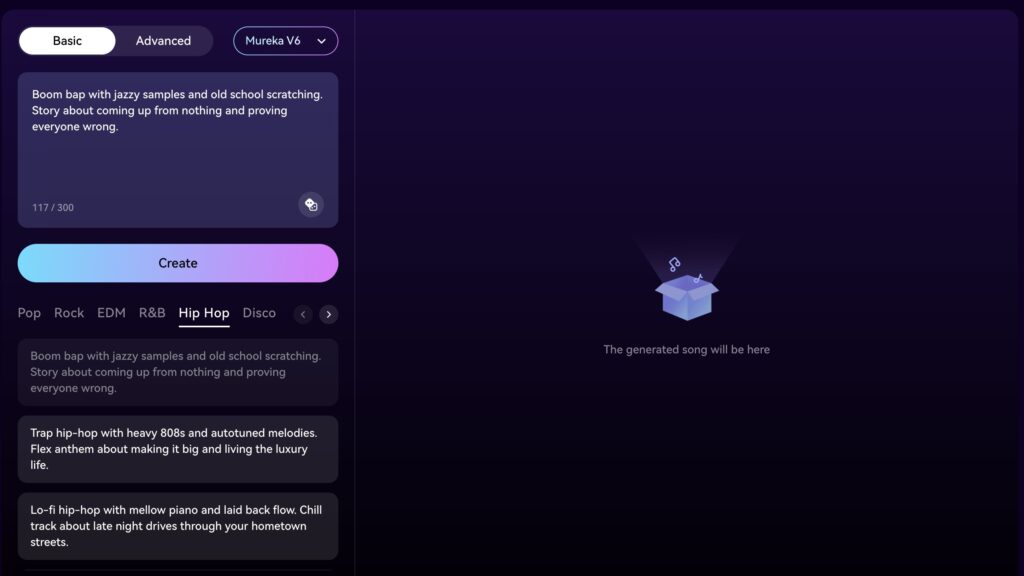 - 3. Click the “Create” button and wait for the AI to generate your music
