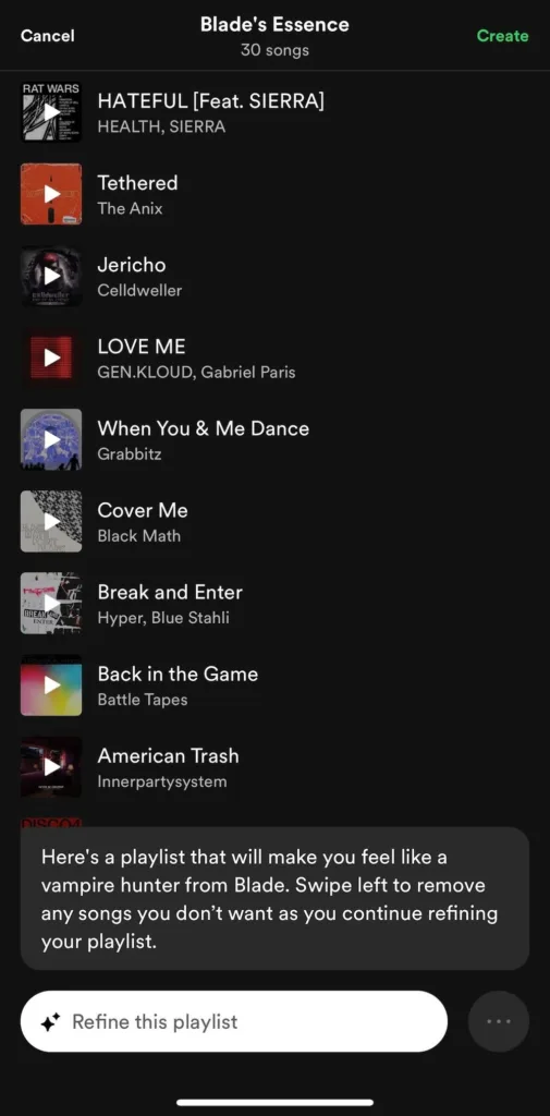 The Verge had the opportunity to test drive the AI Playlist feature and reported impressive results. When prompted to generate a playlist that would “make me feel like a vampire hunter from Blade (1998),” Spotify’s AI delivered a perfect mix of rave-appropriate techno music, even titling the playlist “Blade’s Essence” without any additional input.