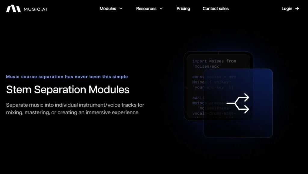 Music source separation has never been this simple with the power of AI. Music AI's stem separation service empowers musicians, producers, and creators to easily extract individual instrument and vocal tracks from any song. this cutting-edge technology allows you to fine-tune mixes, create unique remixes, and unlock new creative possibilities.