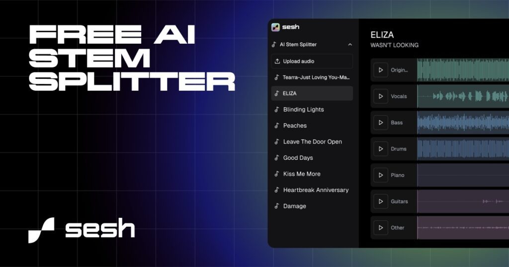 Sesh is a free AI stem splitter tool that breaks down songs into their basic parts.